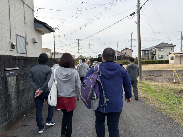 防災グッズを配布して使い方を確認したり、避難経路を実際に歩いてみたりしました。