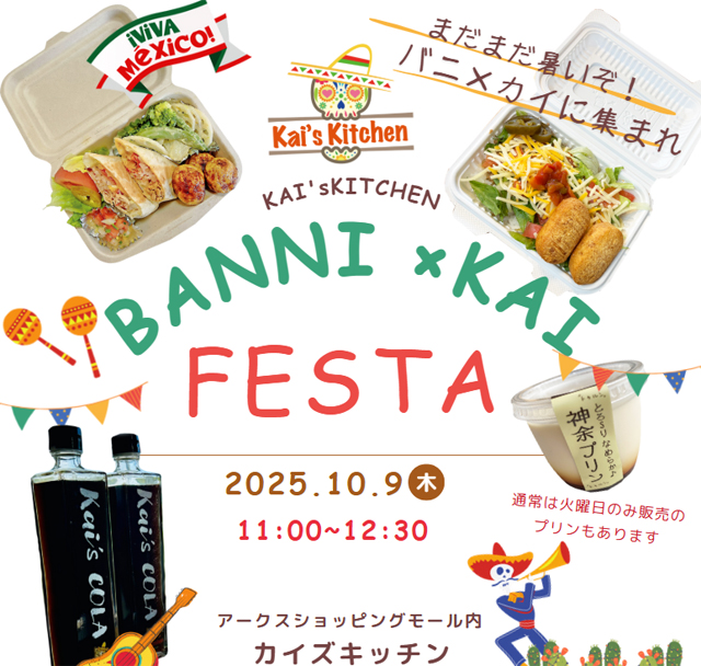 10月の BANNI × KAI FESTA は10/9(木)。11:00~12:00 となります。